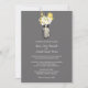 Perfect for a country style wedding or maybe you just love Mason Jars! Mason Jar hanging on a hook filled with country wildflowers. A Slate Grey background against the hanging Mason Jar and wildflowers in colours of yellows and white daisies. If you have any questions on this design or want a colour change please email me paula@labellarue.com Also check for the RSVP, RECEPTION and GUEST SEATING Cards to match!