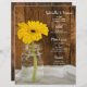 Customize the rustic chic Mason Jar and Yellow Daisy Country Wedding Menu with the details of the meal that you will serve at your casual yet classy bridal shower luncheon, marriage reception dinner or post wedding brunch by adding the salad or first course, entree or second course and dessert or third course. Personalize it with the names of the bride and groom, venue location and event date. This charming wedding menu features a digitally enhanced floral photograph of a glass canning jar filled with a yellow daisy flower blossom and a brown weathered barn wood background. Perfect inspo for an informal ranch or farm style barn party celebration event.