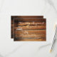 A rustic country wedding reply card on a background of distressed barn wood planks with a hanging mason jar. Completely customizable with your own details. The back of the invitation has "RSVP" in script.
