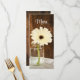 Customisez l'élégant Mason jar et White Daisy Mariage campagnard Menu avec les détails du repas que vous pourrez servir à votre déjeuner de douche nuptiale de style ranch informel, dîner de réception mariage ou brunch mariage en ajoutant la salade ou le premier plat, entrée ou deuxième plat et dessert ou troisième plat. Ce charmant menu rustique chic personnalisé comprend une photo fleurie numériquement rehaussée d'un bocal en verre rempli d'une fleur de marguerite blanche et d'un arrière - plan en bois de grange patiné brun. Parfait pour votre fête de grange décontractée.