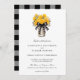 Mason Jar | Floral Country Rustic Wedding Invitation - A country mason jar is filled with yellow flowers and greenery and is tied with a black and white buffalo plaid bow. The perfect invitation for your rustic chic wedding.