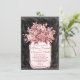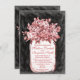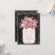 Mason Jar Flowers Chalkboard Wedding Invitations with a coral salmon pink bouquet of flowers in a canning jar. The background is a black and white chalkboard design. This distressed antique design has a faded worn out look with a vintage canning jar filled with flowers. The back has the same mason jar and flower bouquet design with the word "Love" at a diagonal. The writing is a coral salmon pink colour, but can be changed to any other colour using the Customize It button.