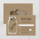 Personalized rustic mason jar wedding RSVP cards featuring a mason jar against a kraft paper look background. Easily personalize online. Matching items available to complement these rustic mason jar wedding RSVP cards.