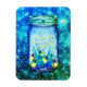 A mason jar of glowing fireflies or lightning bugs against the starry night background. An elegnt country rustic design. In colours of blue, green and yellow.
