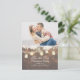 Rustic country photo save the date postcards with mason jar, string lights, lace and barn wood