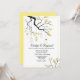 Stylish wedding invitation done in white and yellow, with graphics of a flowering tree branch with mason jar lights hanging down. Personalize all the text to suit your wedding needs. Matching products are available.