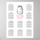 Cute wedding seating chart with a mason jar with a pink heart on its tag. Black, white and pink. One distressed font and one standard. Ten tables.