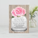 This beautiful rustic wedding invitation features mason jar, delicate pink peonies in full bloom over barn wood background. Fully customizable, click Customize it button to change font colour, size and style. You can also delete, rearrange or add more text to suit your needs.