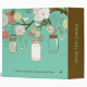 Elegant pastel brown and mint-greens hanging mason jar and retro flowers. Cool for wedding planner professionals