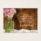 Pratiquez une certaine gentillesse mariage lorsque vous organisez une carte de don dans le cadre de la réception de vos invités. La charmante et élégante Pink Daisies et Mason Jar Country Barn Mariage Charity Favor Card affirme qu'au lieu d'une faveur traditionnelle du parti, un don a été fait en leur nom à la charité. Customisez-le en ajoutant le nom de l'organisme de bienfaisance favori et le nom personnel de la mariée et du marié. Ces faveurs rustiques décontractées et chics, personnalisées, se caractérisent par une numériquement photo florale rehaussée d'un bocal en verre rempli de fleurs de marguerites roses et d'un arrière - plan en bois de grange brun patiné.