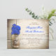 beautiful rustic wedding invitations with distressed wood background and mason jar with royal blue colour flowers . I suggest a beautiful linen texture paper for this design.