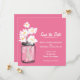Perfect for a country style wedding or maybe you just love Mason Jars! Mason Jar with white Gerber daisies. Bubblegum Pink colour with black drawing of a Mason Jar filled with artsy white daisies. If you have any questions on this design or want a colour change please email me paula@labellarue.com