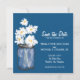 Perfect for a country style wedding or maybe you just love Mason Jars! Mason Jar with white Gerber daisies. Night Blue colour with black drawing of a Mason Jar filled with artsy white daisies. If you have any questions on this design or want a colour change please email me paula@labellarue.com