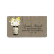 FROM THE MASON JAR WEDDING COLLECTION: (FOR MEDIUM ADDRESS LABEL OR USE FOR RETURN ADDRESS LABEL) Perfect for a country style wedding or maybe you just love Mason Jars! Mason Jar hanging on a hook filled with country wildflowers. A dark taupe (X0WG11) old wood grain panel background against the hanging Mason Jar with yellow Billy Balls and wild white daisies. If you have any questions on this design or want a colour change please email me paula@labellarue.com BEFORE YOU CUSTOMIZE OR PLACE AN ORDER. Also check for the MAIN INVITE, RECEPTION and GUEST SEATING Cards to match!
