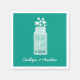Mason Jar with Flowers and You Choose Custom Colour A16 TEAL. This mason jar and flowers design is cute and trendy! You can change the background colour for a different look. Personalize with your names and wedding date.