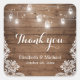 Mason Jars Lights Lace Rustic Wood Thank You Square Sticker