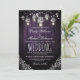 Rustic mason jars with baby's breath flowers lace and string lights purple wood background wedding invitation for summer, fall, spring or winter wedding! Perfect design for the country wedding with mason jars lighting and strings of lights decor. Contact me for any support in design customization. Matching products available