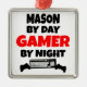 This ornament featuring the quote "Mason by Day Gamer by Night" is perfect for any mason that loves playing video games.