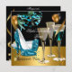 Masquerade Birthday Party Teal Gold Wine Stiletto Invitation