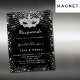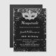 For an elegant Masquerade, 50th (or any age) birthday. A black background. Decorated with faux silver glitter and a masquerade mask. Personalize and add a name, age and party details. The name is written with a hand lettered style script