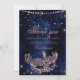 Merci à la famille et aux amis d'être venus à votre anniversaire, fête ou mariage sur le thème du bal masqué avec ce remerciement moderne, chic et glamour avec un masque de masquerade pailleté or rose dessiné à la main avec des scintillements de diamant or rose sur un fond aquarelle bleu marine foncé.