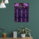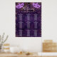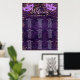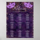 Seating chart for a Masquerade party A deep purple floral lace pattern as background. Decorated with faux glitter dust and masquerade masks. Personalize and add the guests names. 9 tables.