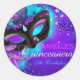 Quinceanera Sticker. 15th Birthday. Pretty sparkle mask with purple & teal feathers.