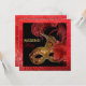 Masquerade quinceañera fifteenth birthday party red foil invitation, featuring a Venetian red, gold mask with red feathers on black background with a golden border of faux red foil with crumbled texture. Textbin gold. A perfect template design for your quinceañera masquerade ball or fiesta de quince años, fiesta de quinceañera, quince años or quince bal masque party. Note that there is not any real gold foil, mask or feathers but they are all “printed on” images.