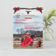Invita a tus invitados a la quinceañera de sus sueños con estilo con estilo con esta elegante invitación "Baile de Máscaras en el Rancho". El anverso présenta a una glamurosa joven con un vestido rojo, antifaz, rosas, una herradura y una bota vaquera. El révérso te permite añadir una foto personalizada con un fondo ranchero, idéal para destacar a la Celante. Ideal para fiestas al aire libre o en un granero. Disponible en inglés y español.