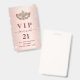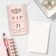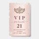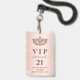 A modern, stylish and glamourous badge for a 21st (or any age) masquerade party. A rose gold gradient background with faux silver sparkles and a masquerade mask. With the text: VIP. Personalize and add name, age, address/date. The name is written with a modern dark rose gold coloured hand lettered style script with swashes.