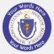 This custom sticker is decorated with the Massachusetts Great Seal that can be customized with a choice of words above and below that allow you to personalize it with the name of a person, place, position, etc.
