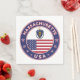 Massachusetts badge with flag of Massachusetts and flag of United States colours, rounded shape.