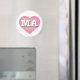 This magnet features a pink heart with a white- washed centre containing the bold, white, upper case letters MA, the official abbreviation for Massachusetts, the bay state.
