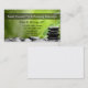 Soothing massage business cards in a cool design that includes a photo of zen rocks and leaves along with basic information you can customize for your masseuse service.