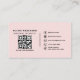 Keep your clients coming back with this Massage Therapist QR Code Pink Loyalty Card. Designed with a soft pink background, this card combines elegance with functionality. Featuring a scannable QR code, clients can easily track their visits, earn rewards, or access special offers. The modern, clean layout ensures your business stands out, while the customizable text allows you to add your logo, services, and loyalty program details. Perfect for massage therapists, spas, and wellness centres, this card is a convenient and stylish way to encourage repeat business.