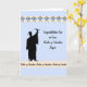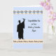 Il s'agit d'une carte bleu clair (les couleurs du diplôme), avec des bordures beiges, des bonnets noirs de graduation et une silhouette d'un diplômé masculin. Carte parfaite pour l'usage.