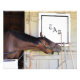 This dark bay colt from the Todd Pletcher barn is very curious as he stretches his muscular neck outside his stall door to get a closer look at the handle of the rake. Backside in the oldest barn in American racing "Horse Haven" This beautiful colt showing off his magnificent black mane, as he just looks to play with that pole.