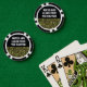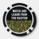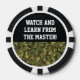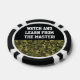 "Learn From the Master" this poker chip features a black diamond plate top and a green camouflage bottom half. This poker chip is perfect for master poker players who like to show off their skills.