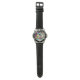 My husband loves the watch, he likes the dial, the graphics, the band, and it keeps perfect time.