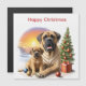 Beautiful English Mastiff. Beautiful Mastiff with puppy wishes a Merry Christmas. Great dogs with evergreen and beautifully decorated Christmas tree. Dreamy old English Mastiff female. The Mastiff is a molossus and a very good watchdog. He is a proud and very gentle giant. This breed is an English Mastiff, extremely lovable and very loyal. A great family dog that is always balanced. A gift for any dog owner.