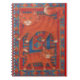 A marmalade tabby cat and kitten standing on a red, blue and yellow fish-themed mat. Notebook with a customizable design for you to personalise with your own text, pictures and ideas. Image created from an original coloured pencil drawing.