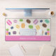 Un Mat de bureau pour les amateurs de macarons français. Il est livré avec un motif de macarons colorés, un texte personnalisable sur un arrière - plan rose en bas. Cela pourrait faire un cadeau parfait pour un ami qui aime les douceurs cuisines, un chef pâtissier ou simplement décorer votre bureau au bureau!