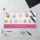 Un Mat de bureau rose avec quelques cupcakes et un prénom et un texte personnalisés. Une bonne idée cadeau pour un chef pâtissier, ou juste pour une personne qui aime les gâteaux de cuisine !