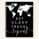 Choisissez votre propre couleur arrière - plan, ou gardez la citation de voyage numérique en noir et blanc inspirée par les nomades sur la couverture de ce carnet de journal d'aventure avec une citation "mangez la répétition de voyage de sommeil". Choisissez une couleur arrière - plan, changez la couleur de la carte, changez la couleur du texte pour en faire votre propre couleur et inspirez vos objectifs de voyage et de voyage chaque jour. Visitez notre boutique et collection de créateurs en utilisant les liens ci-dessous pour apparier des articles inspirés du voyage.