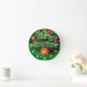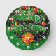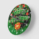 Matching Green Merry Christmas Gold Bells Greeting Round Clock