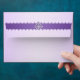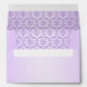 This stylish custom envelope co-ordinates with many of our stationery items and custom invitations. It features a pale, shaded lilac backgound with purple lace edged ribbon and ornate silver effect button to the back flap. Inside the envelope is a two tone damask pattern.