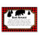 Features red and black flannel plaid with wood texture frame, accented by beautiful baby bear and pine tree silhouettes.