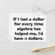 Si j'avais un dollar pour chaque fois que l'algèbre m'a aidé, je n'aurais pas de dollars.