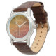 I like the illustrative watch with the lady on it. It is a great reminder that I am blessed and it has a very sturdy leather band. The colors are true and vibrant. Love the color of the Leather also. Very nice.