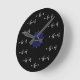 The numbers on the clock are replaced with quadratic equations whose solutions indicate the hours or minutes.